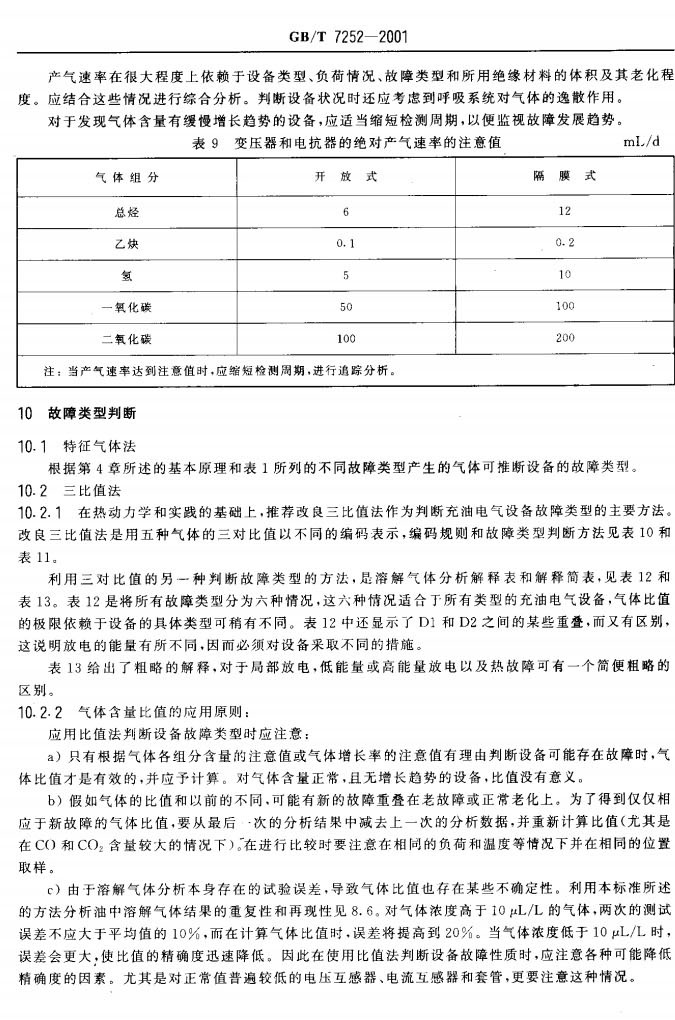 GBT 7252-2001 變壓器油中溶解氣體分析和判斷導(dǎo)則